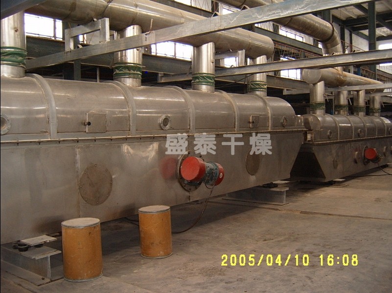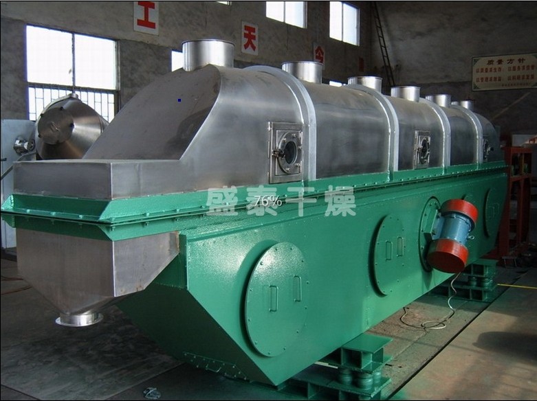 物料自進料口進入機內,在振動作用下,物料沿流化床水平方向拋擲向前連續運動,熱風向上穿過流化床同待處理物料進行熱質后,濕空氣經旋風分離器除塵后由排風口排出,